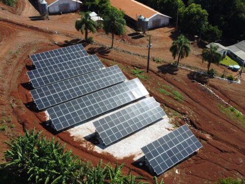 A energia gerada pelos painéis fotovoltaicos é convertida em energia em corrente alternada para uso em qualquer equipamento.